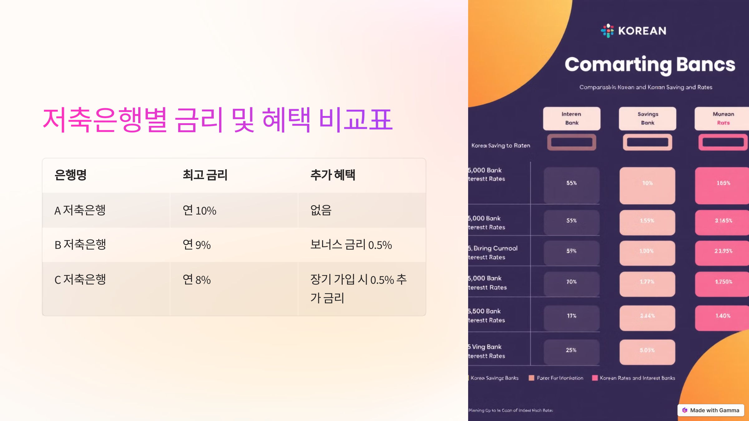| B 저축은행 | 연 9% | 보너스 금리 0.5% |