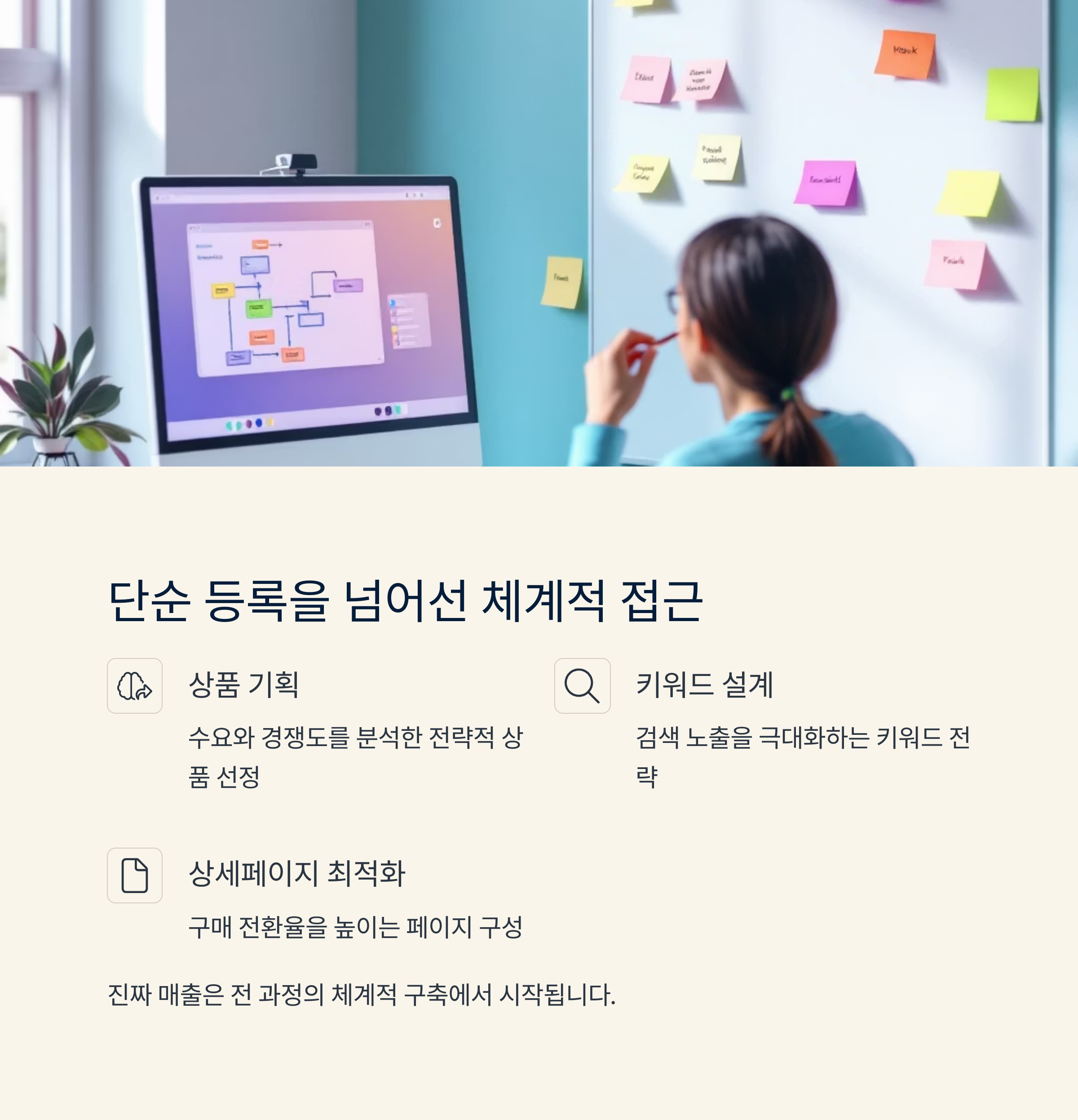 상품 기획 → 키워드 설계 → 상세페이지 최적화 → 노출 전략 → 고객 응대까지