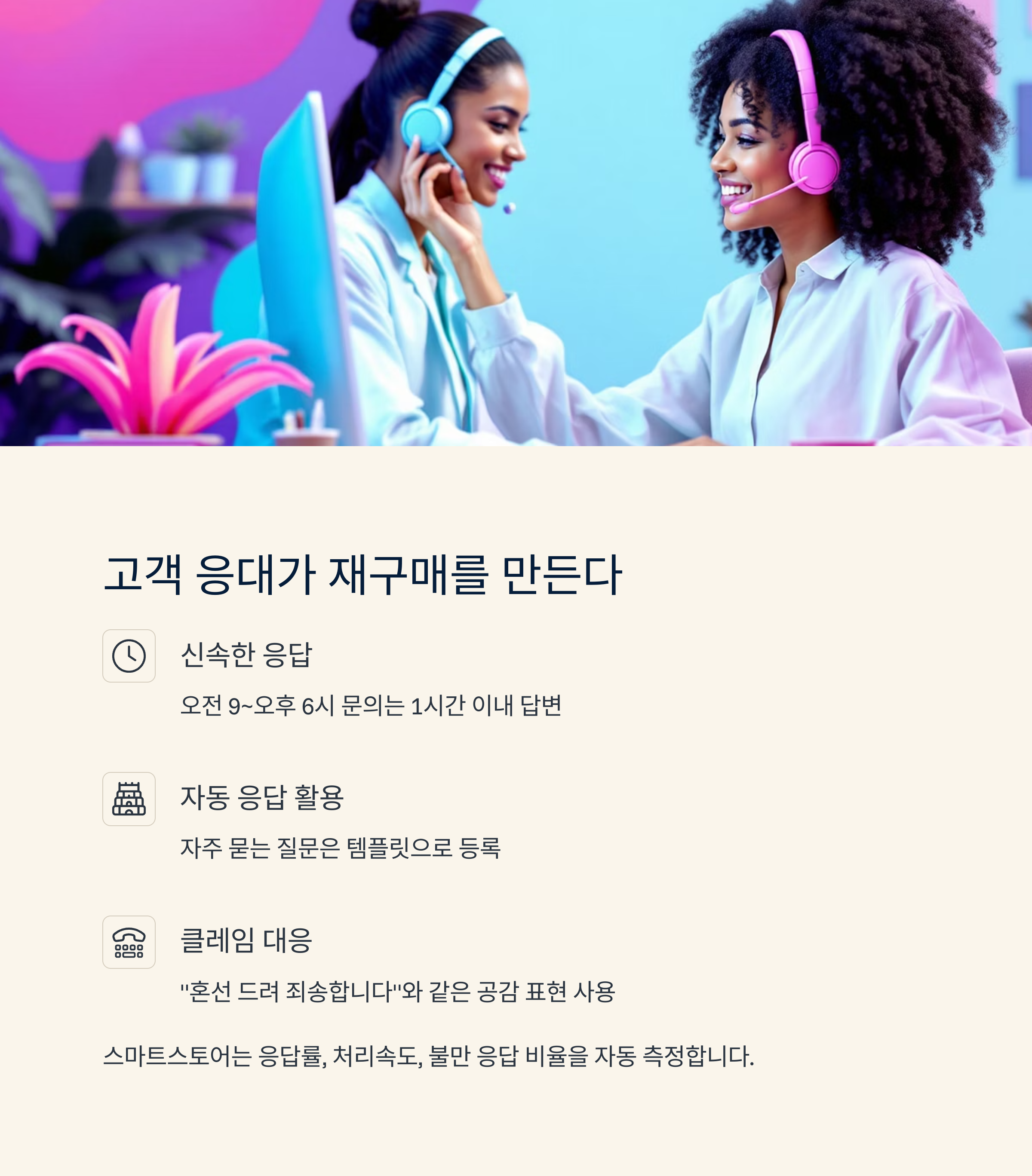 스마트스토어는 응답률, 처리속도, 불만 응답 비율을 자동 측정하기 때문에