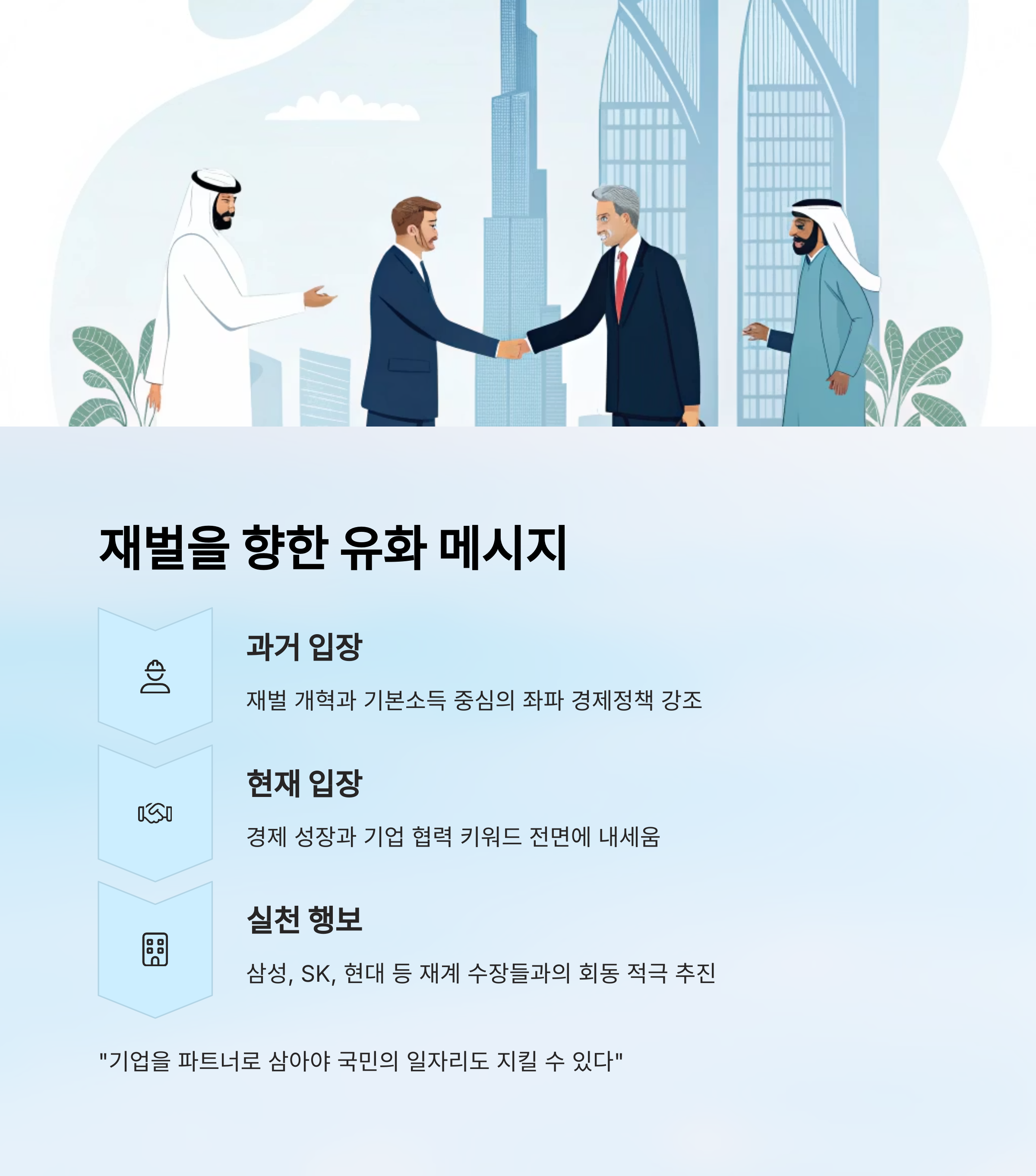그가 과거의 대립적 경제관에서 현실 친화적 성장 전략으로 선회했음이 명확히 드러났습니다.