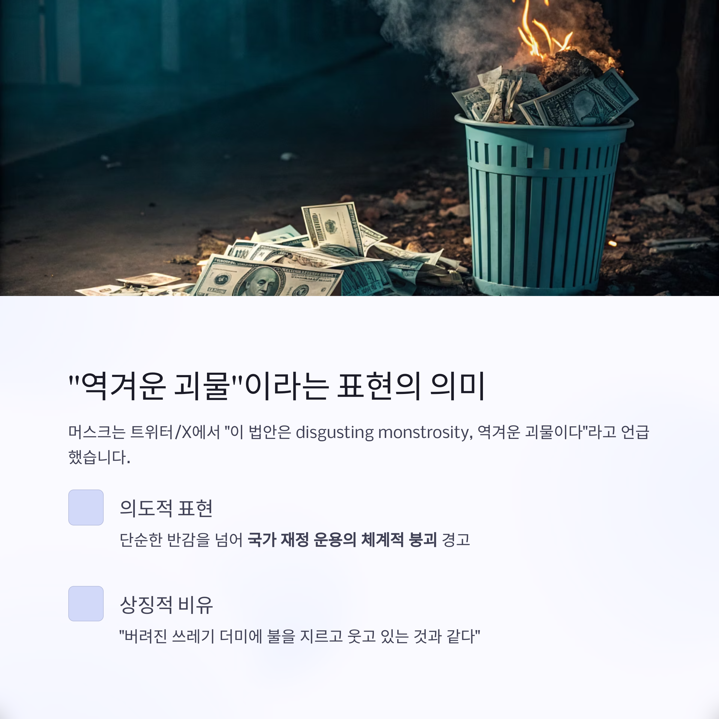 "이 법안은 역겨운 괴물 같은 존재로, 미국의 이미 거대한 재정 적자를