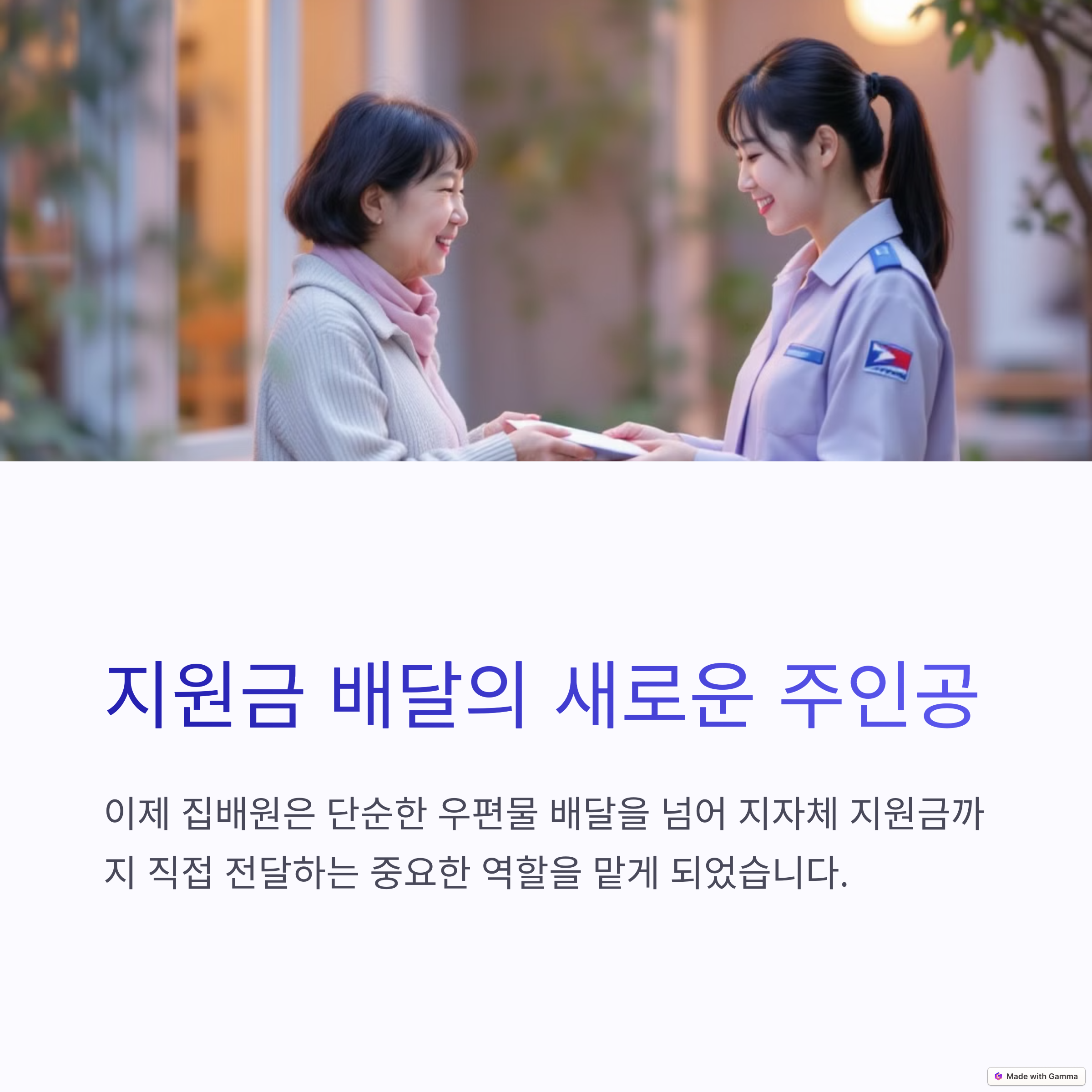 태그: #집배원, #지자체지원금, #지원금배달, #우편서비스, #사회적약자지원, #긴급생활비, #기초연금, #재난지원금, #행정서비스, #지역사회