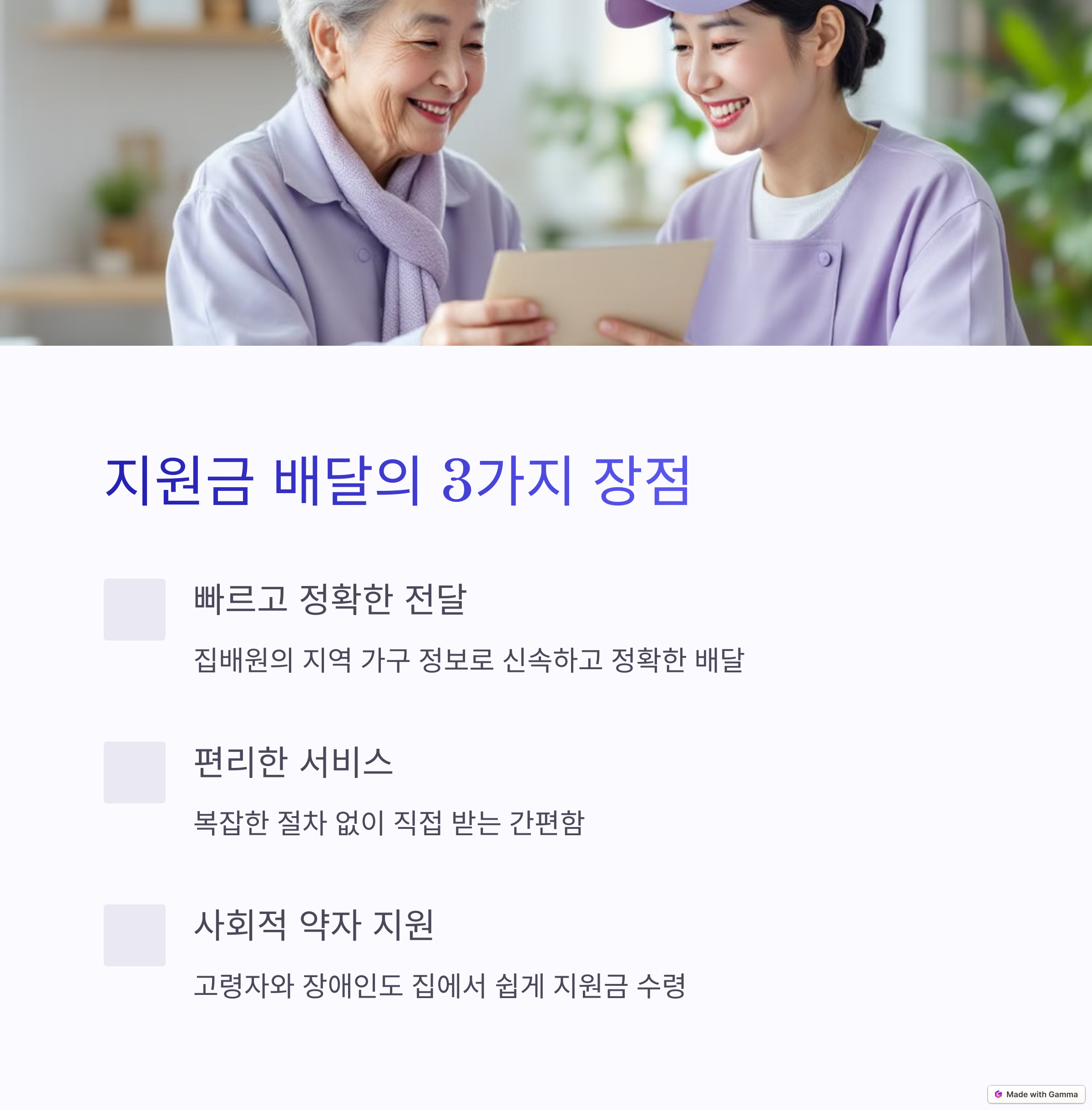 1. 집배원이 지원금을 배달하는 방식은 어떻게 되나요?