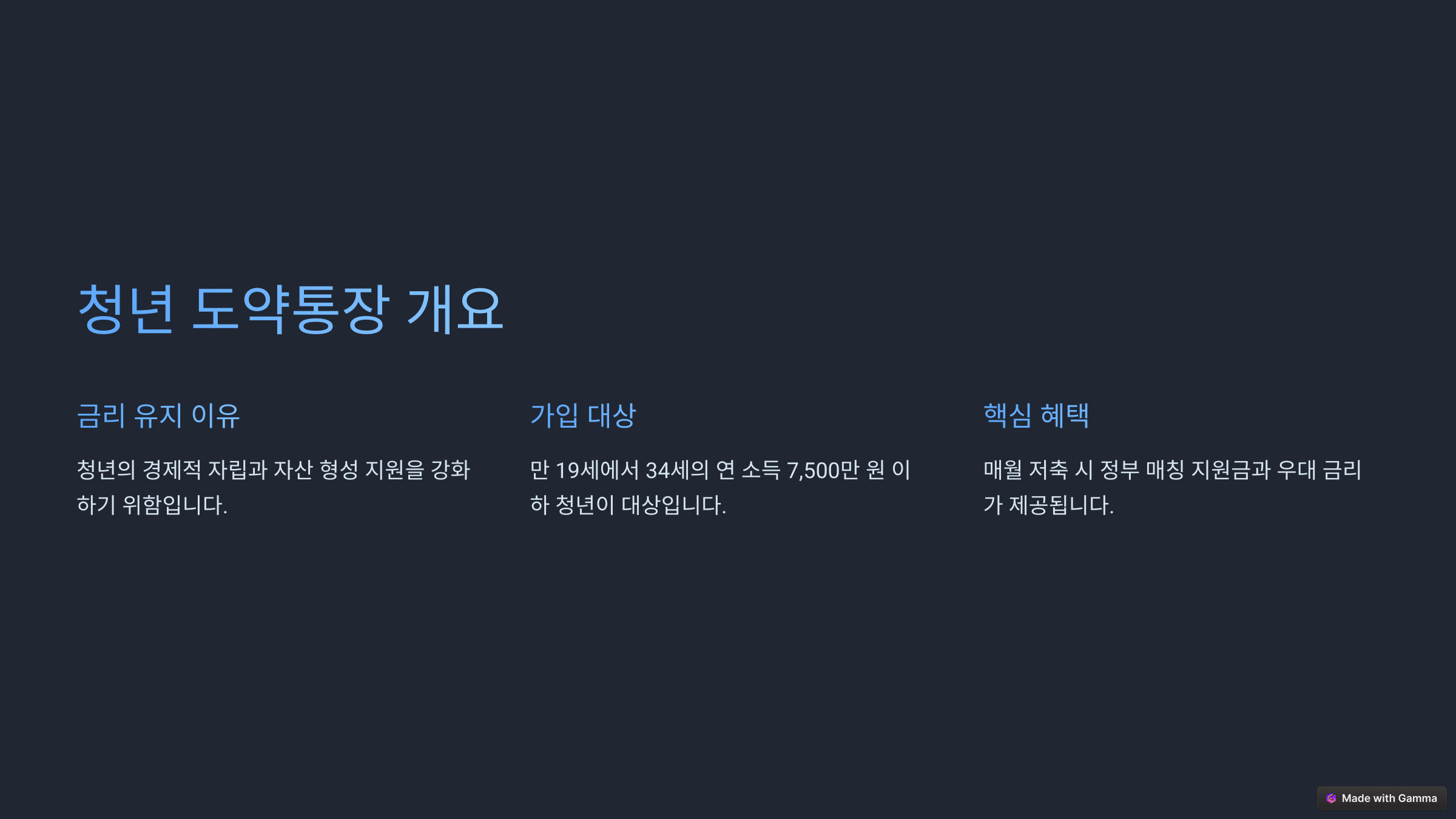 | 금리 유지 이유 | 청년의 경제적 자립과 자산 형성 지원 강화 |