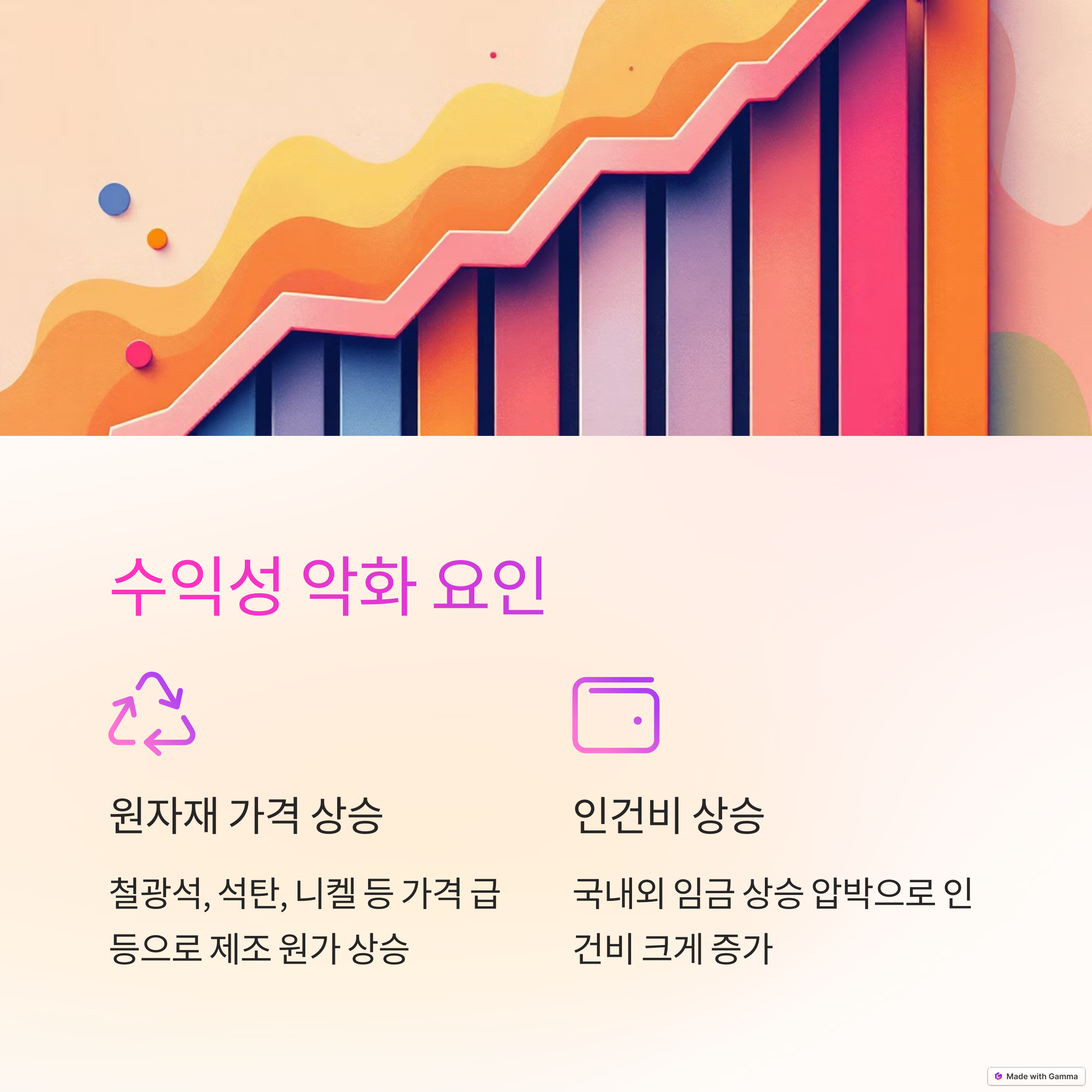 | 원자재 가격 | 원자재 가격 하락 시 수익성 회복 | 가격 상승 시 원가 부담 증가 |