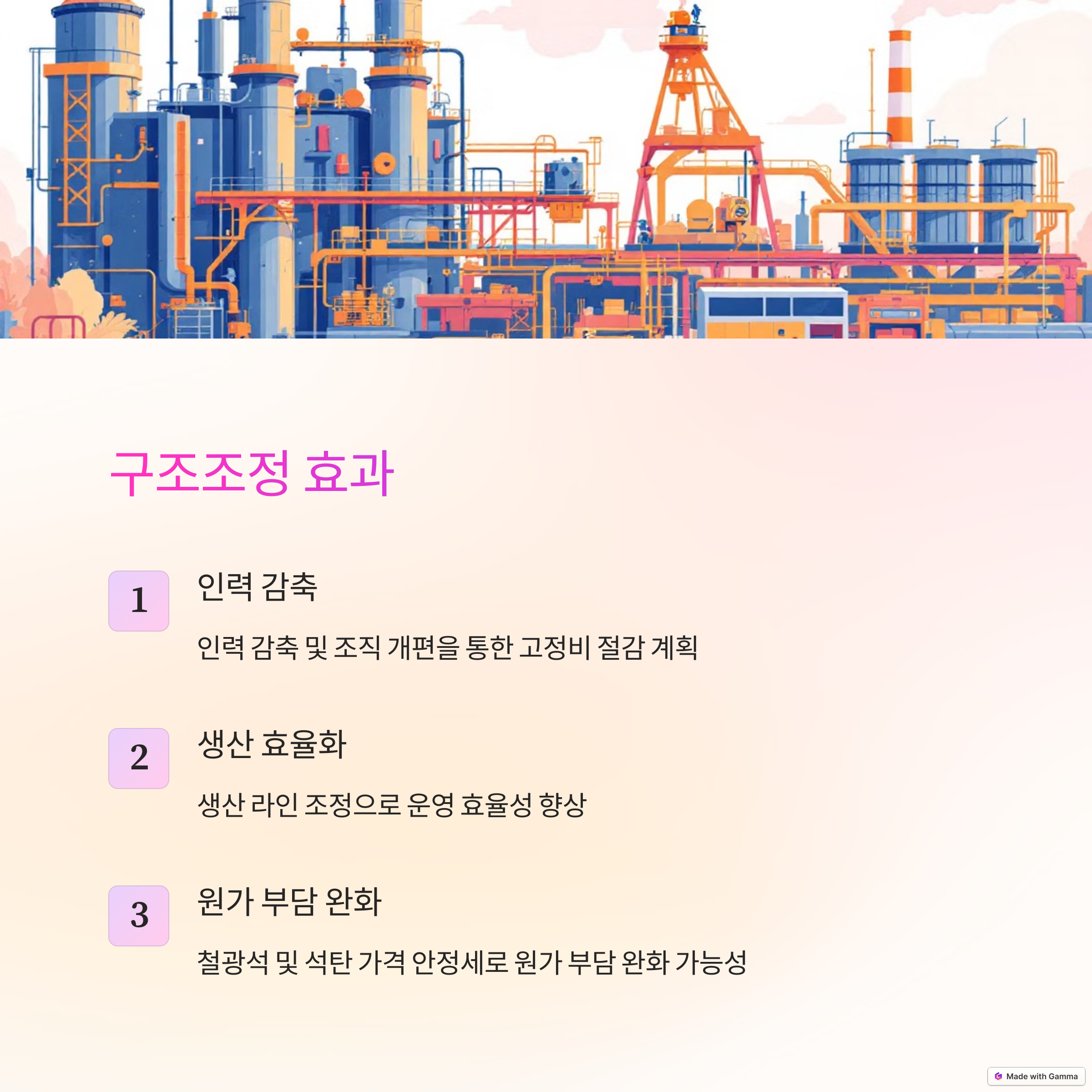현대제철은 비용 절감과 생산 효율화를 위해 구조조정을 진행 중입니다.
