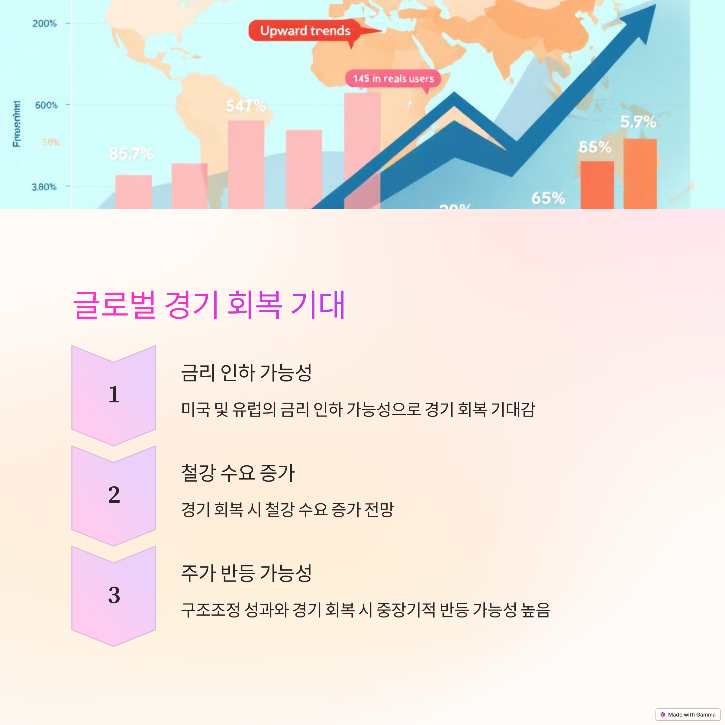 전문가들은 현대제철의 주가가 단기적으로는 하락할 수 있지만, 구조조정 성과가 가시화되고 글로벌 경기 회복이 이루어진다면 중장기적으로 반등 가능성이 높다고 평가하고 있습니다.