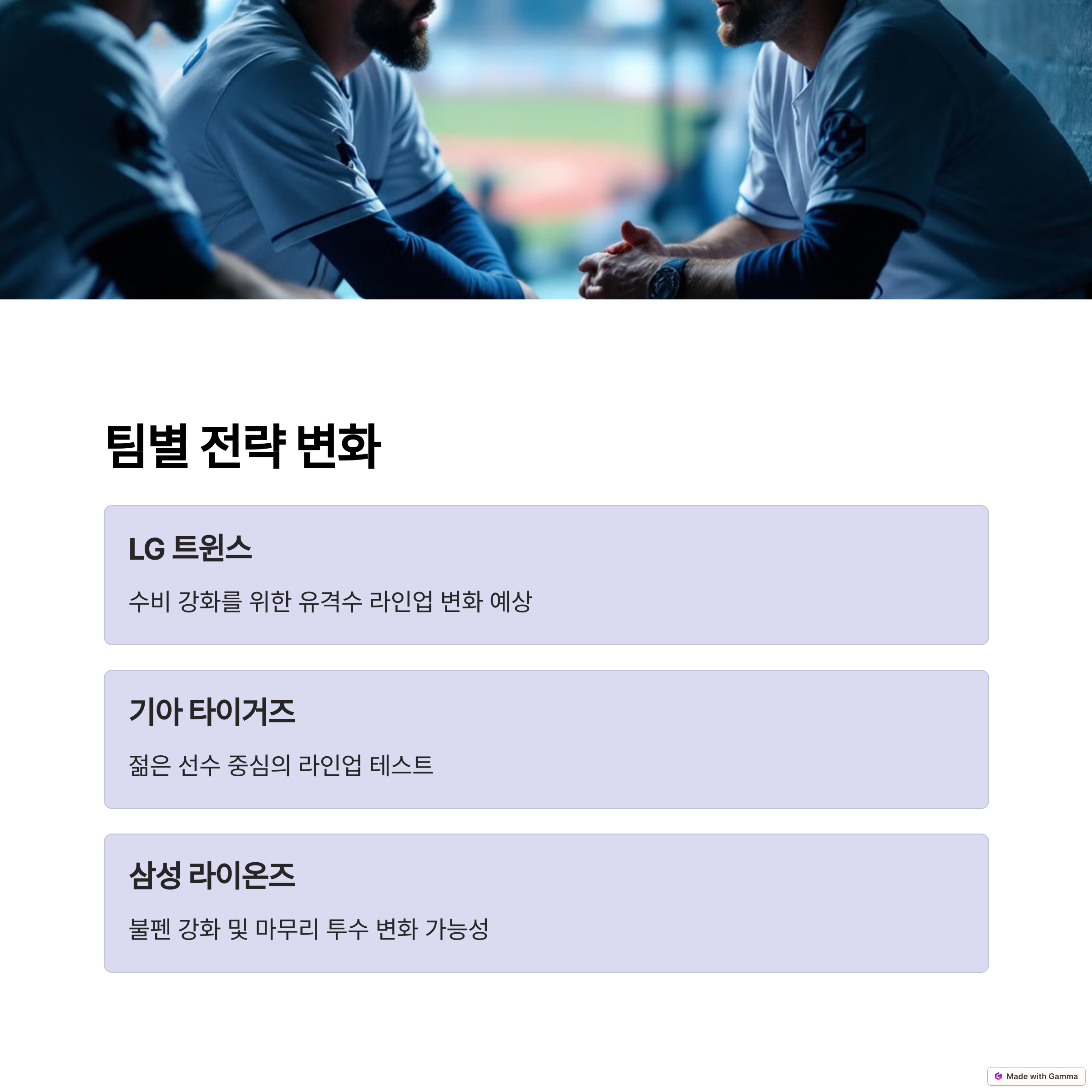- LG 트윈스: 수비 강화를 위해 유격수 라인업 변화 예상