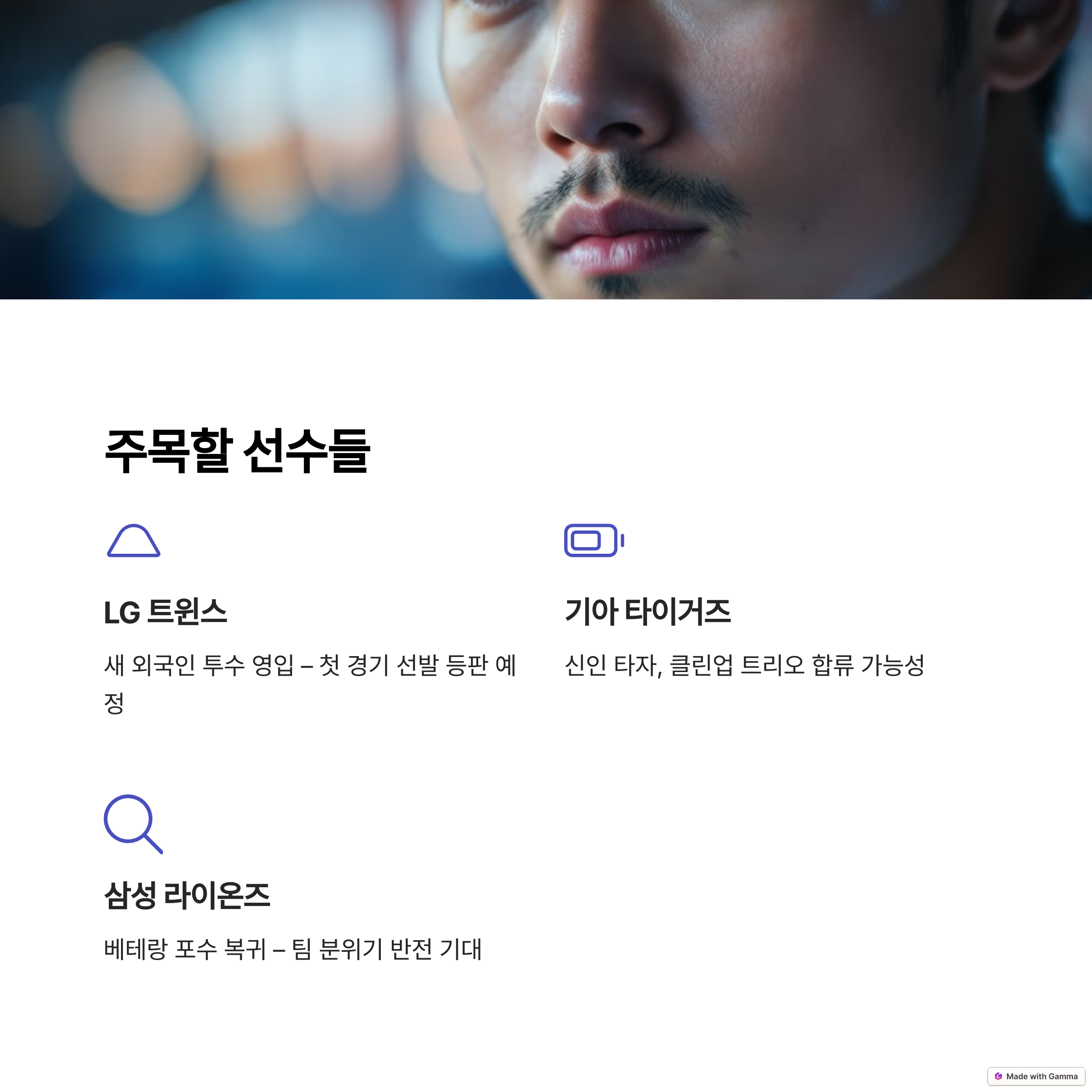 - LG 트윈스: 새 외국인 투수 영입 – 첫 경기에서 선발 등판 예정